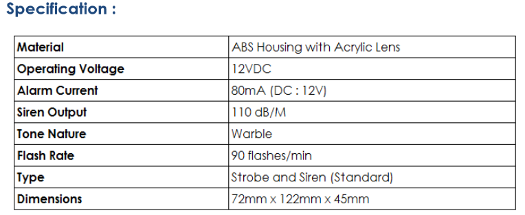 - The sounder and strobe is designed to give an audio visual indication in case of emergency.